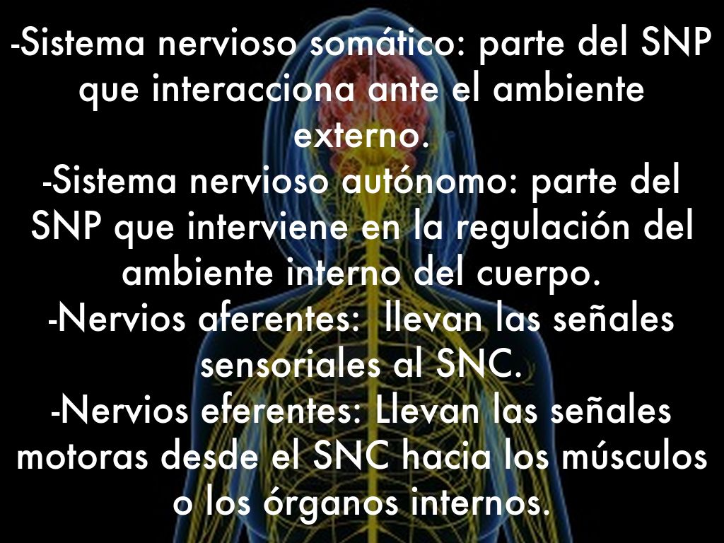 -Sistema nervioso somático: parte del SNP que interacciona ante el ambiente externo.