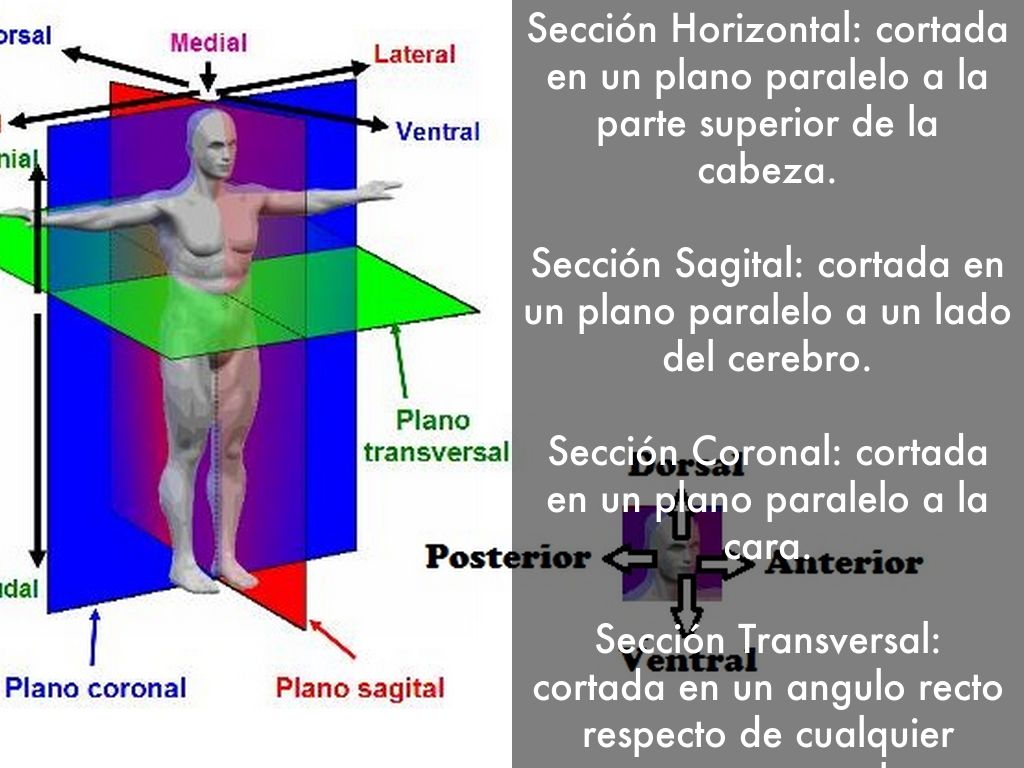 Sección Sagital: cortada en un plano paralelo a un lado del cerebro.