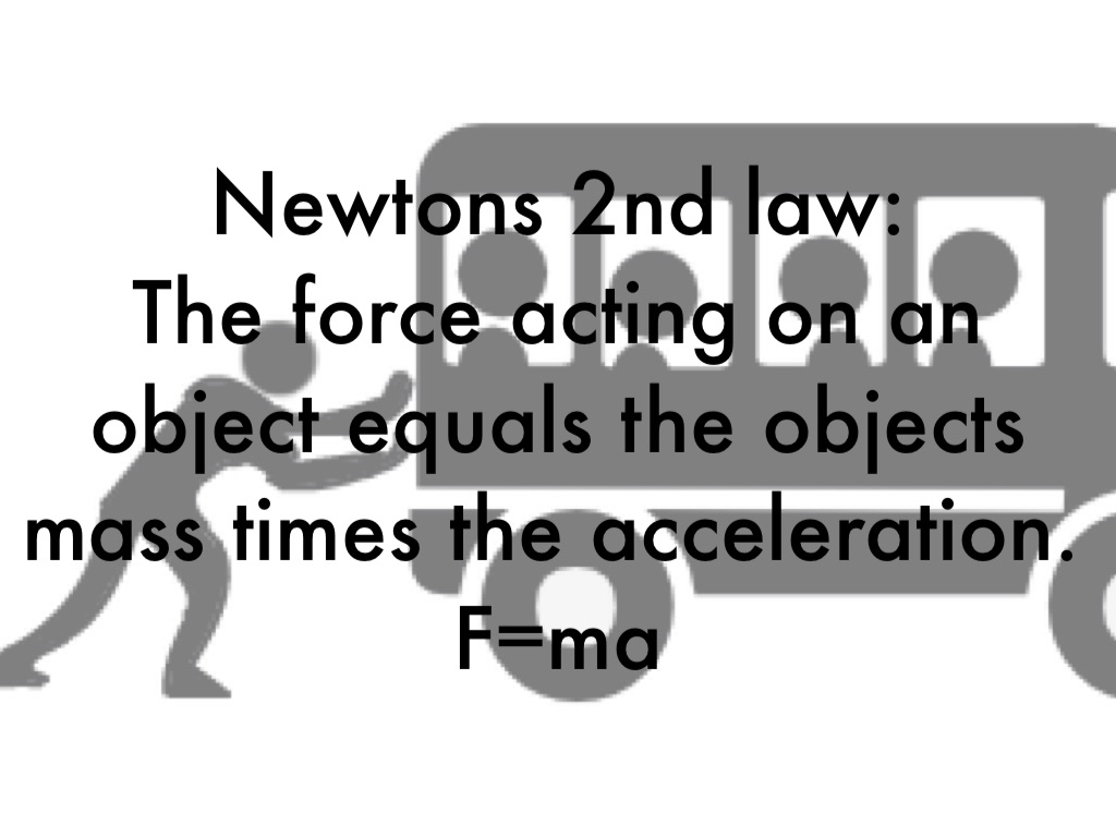 The force acting on an object equals the objects mass times the acceleration. F=ma