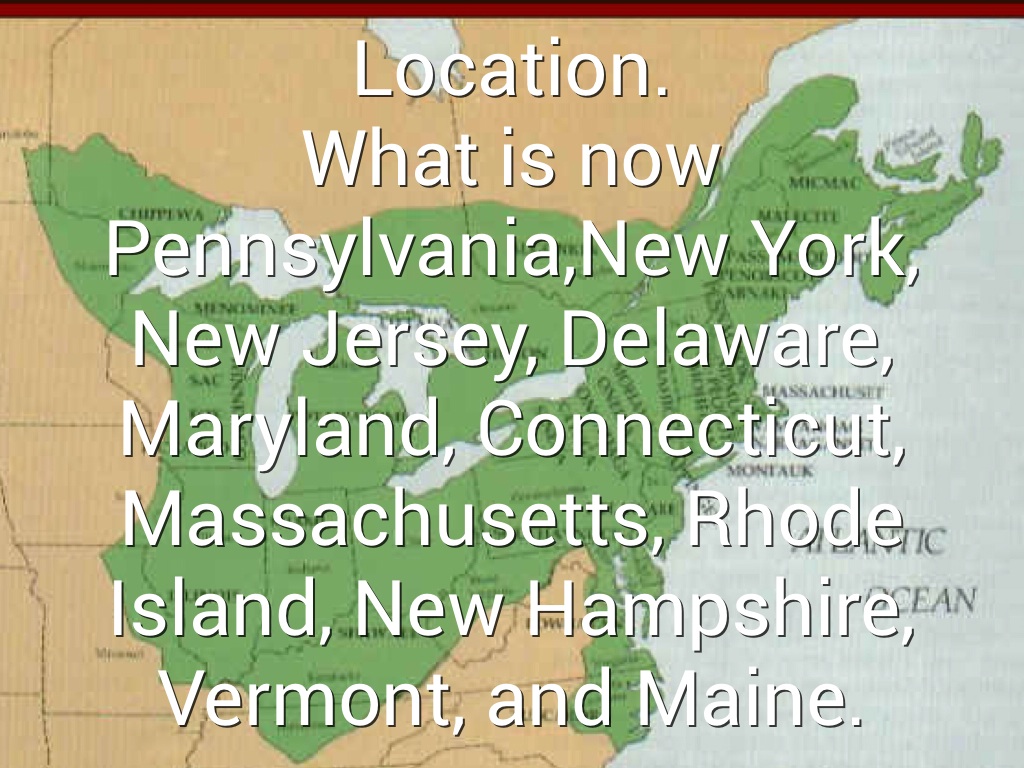 What is now Pennsylvania,New York, New Jersey, Delaware, Maryland, Connecticut, Massachusetts, Rhode Island, New Hampshire, Vermont, and Maine.