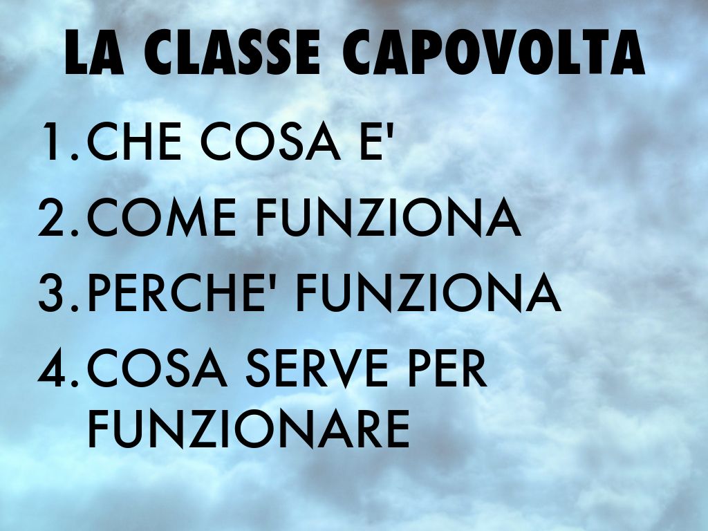 NELLA CLASSE CAPOVOLTA IL DOCENTE REGISTRA LA SPIEGAZIONE CHE GLI ALUNNI VEDONO A CASA, POI IN CLASSE SI FANNO GLI ESERCIZI INSIEME E SI CHIARISCONO I DUBBI