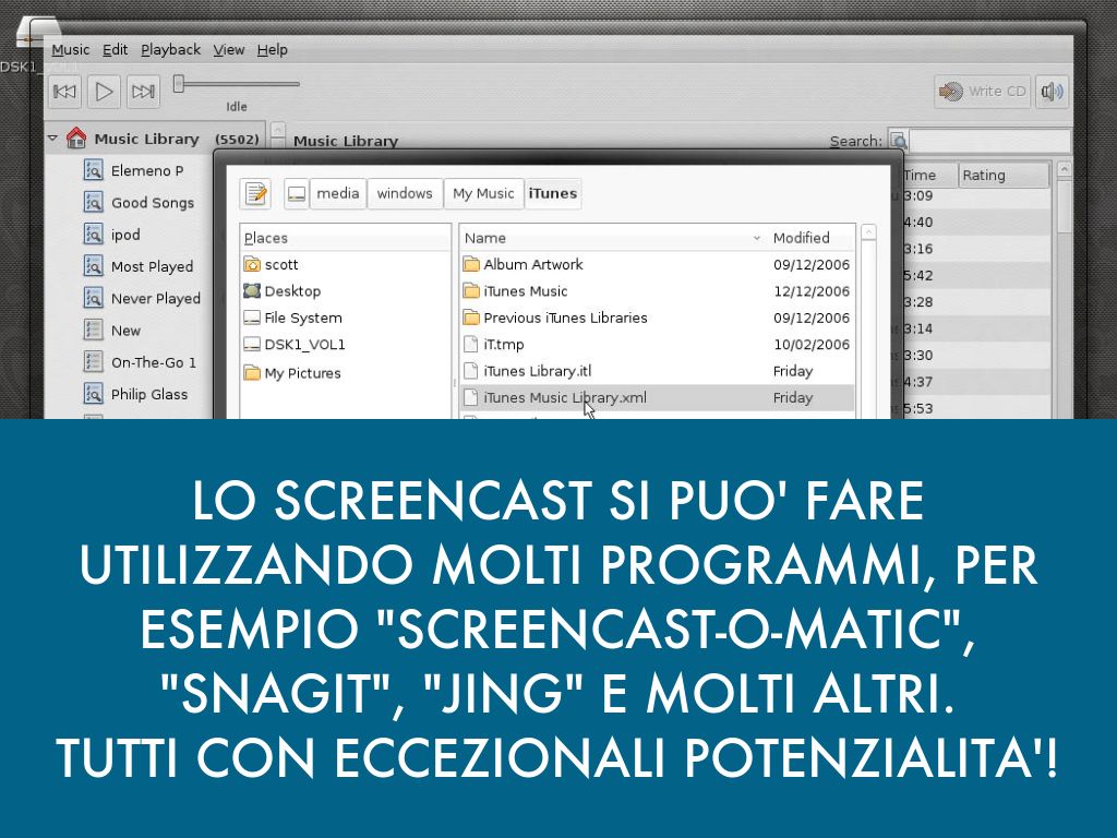 LO SCREENCAST SI PUO' FARE UTILIZZANDO MOLTI PROGRAMMI, PER ESEMPIO "SCREENCAST-O-MATIC", "SNAGIT", "JING" E MOLTI ALTRI. TUTTI CON ECCEZIONALI POTENZIALITA'!