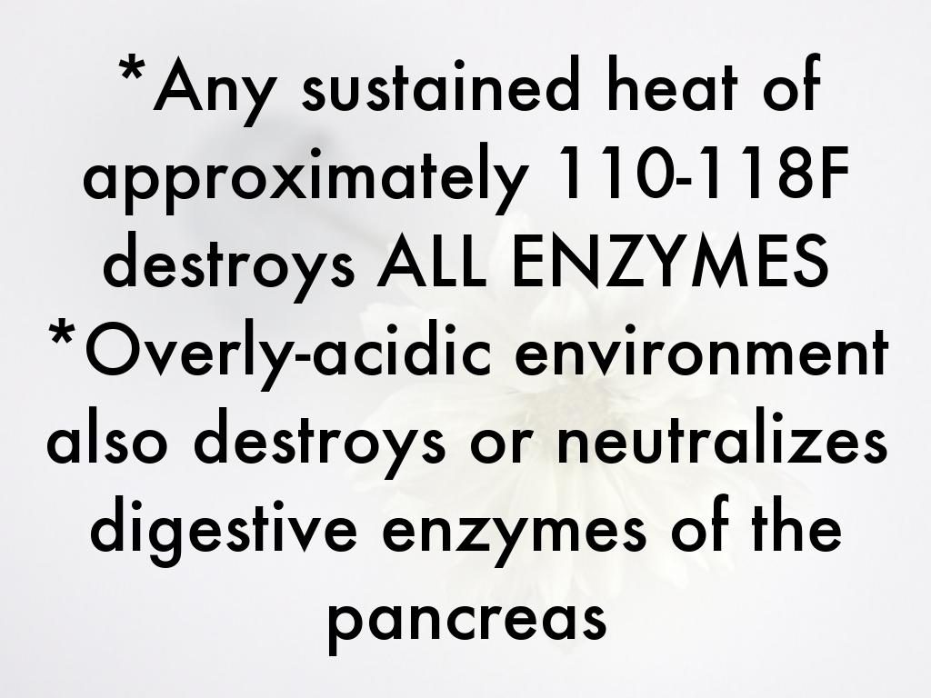 *Any sustained heat of approximately 110-118F destroys ALL ENZYMES