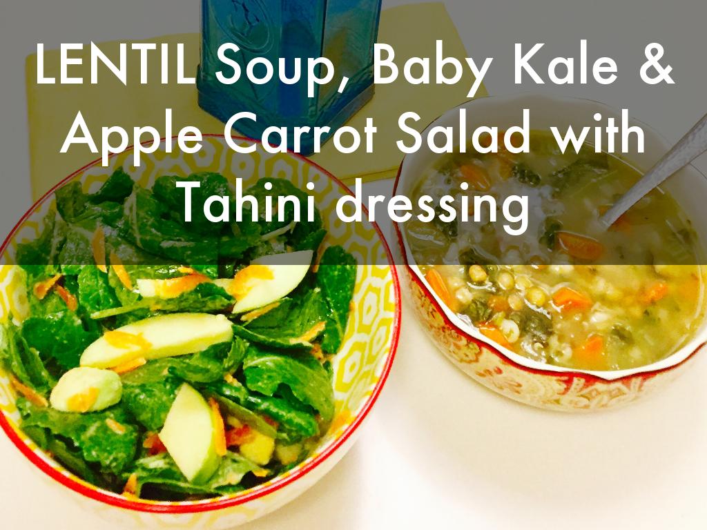 LENTIL Soup, Baby Kale & Apple Carrot Salad with Tahini dressing