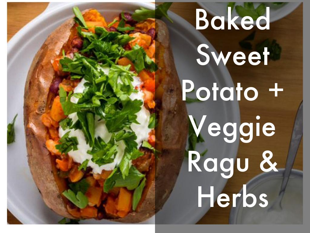 Baked Sweet Potato + Veggie Ragu & Herbs