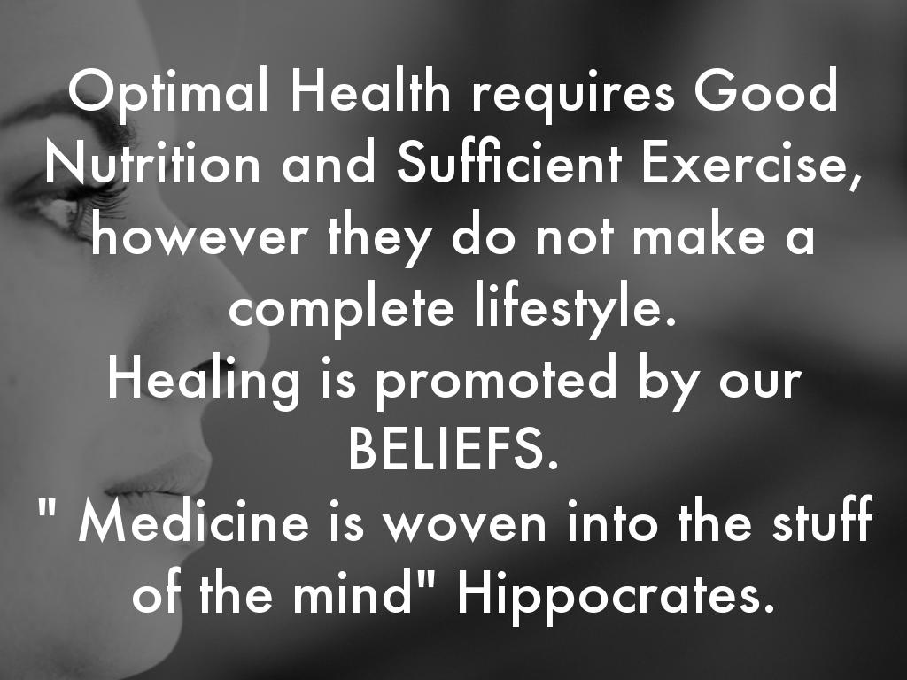 Optimal Health requires Good Nutrition and Sufficient Exercise, however they do not make a complete lifestyle.