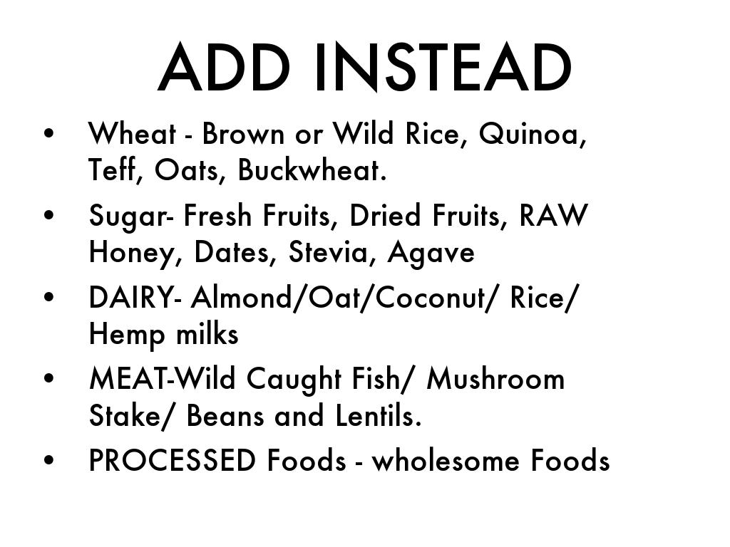 • Eat Well: Clean Fresh Foods, Organic when/ if possible