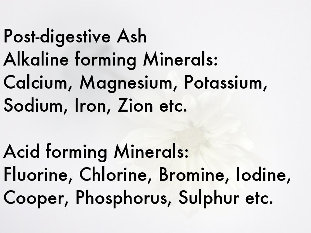 Calcium, Magnesium, Potassium, Sodium, Iron, Zion etc.