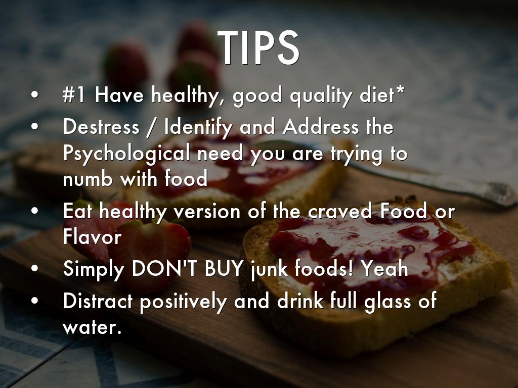 • Destress / Identify and Address the Psychological need you are trying to numb with food