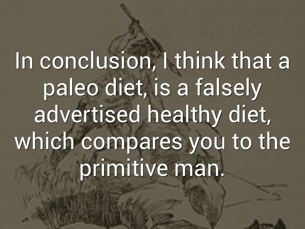 In conclusion, I think that a paleo diet, is a falsely advertised healthy diet, which compares you to the primitive man.