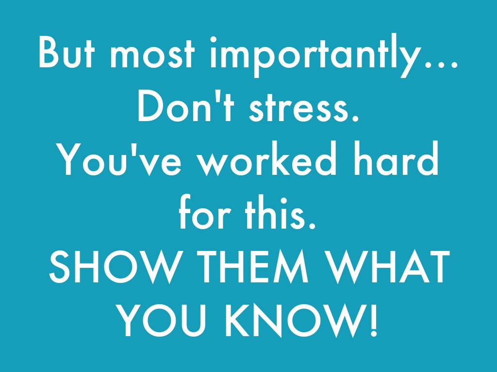 • When you see there are 30 minutes left: STOP working on the questions and begin your essay.