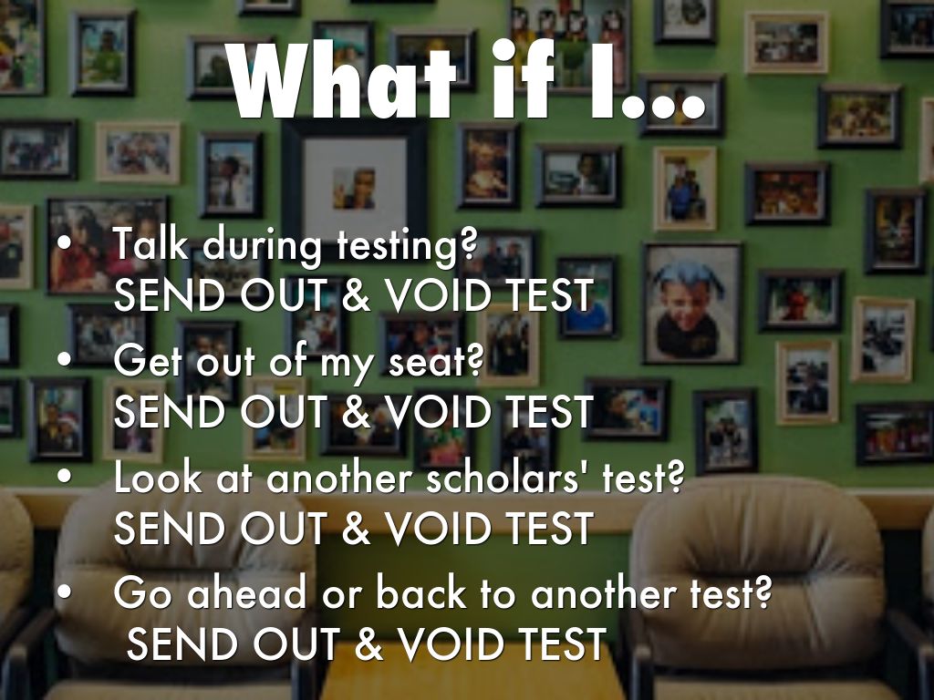• Look at another scholars' test? SEND OUT & VOID TEST