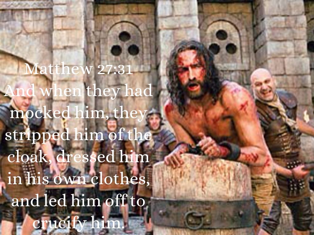 And when they had mocked him, they stripped him of the cloak, dressed him in his own clothes, and led him off to crucify him.
