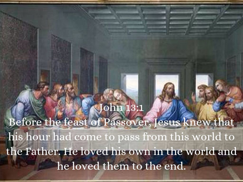 Before the feast of Passover, Jesus knew that his hour had come to pass from this world to the Father. He loved his own in the world and he loved them to the end.
