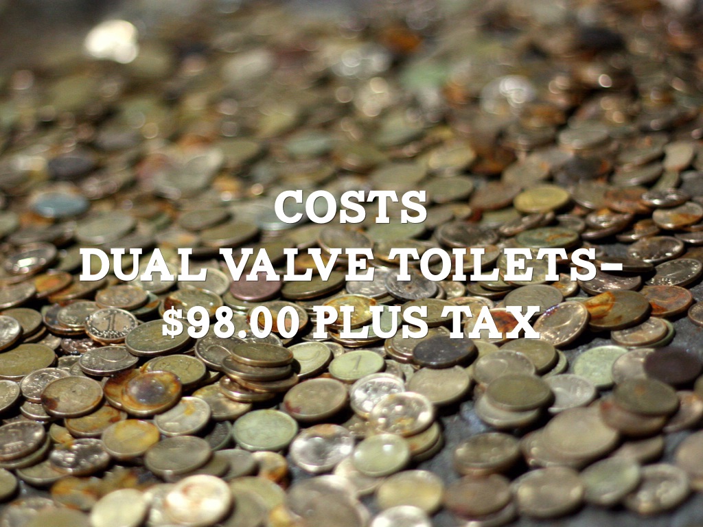 Dual valve toilets- $98.00 plus tax