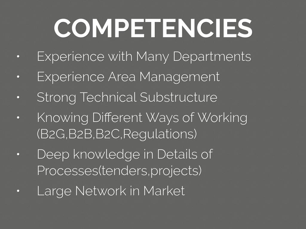 • Deep knowledge in Details of Processes(tenders,projects)