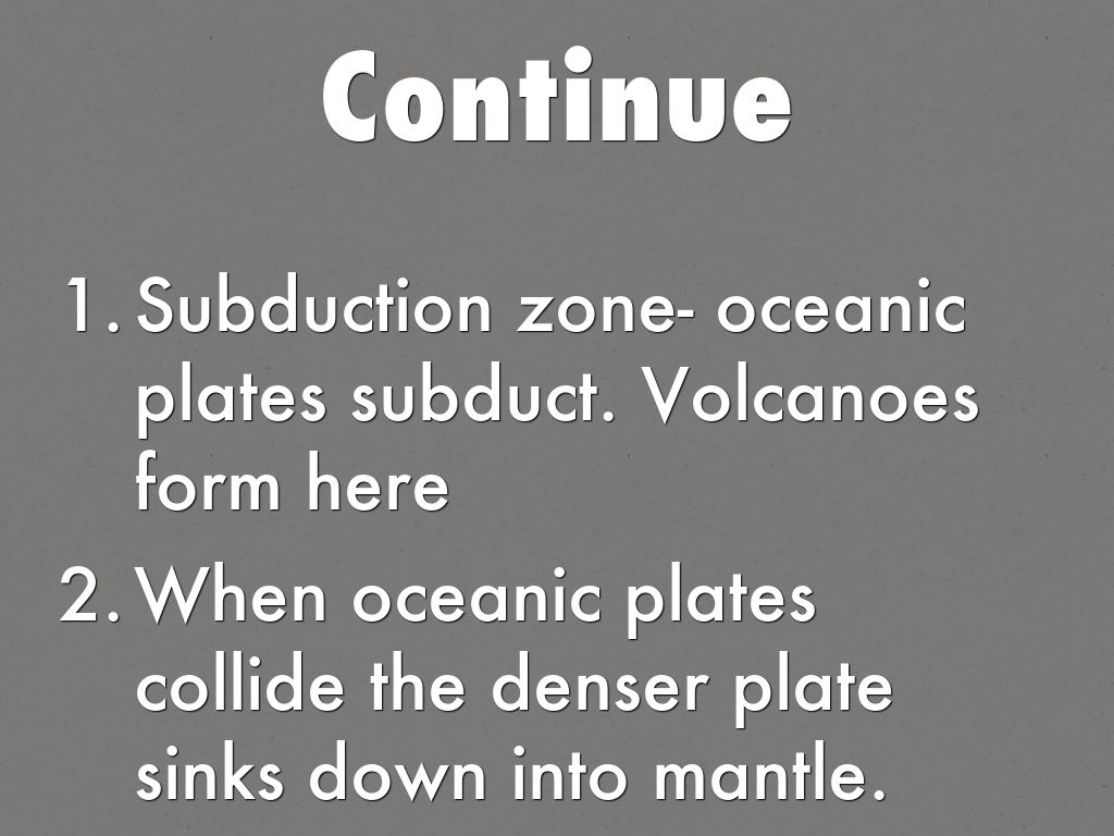 • When oceanic plates collide the denser plate sinks down into mantle.