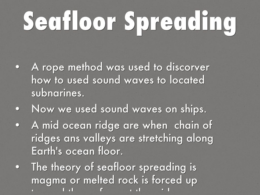 • The theory of seafloor spreading is magma or melted rock is forced up toward the surface at the midocean ridge.