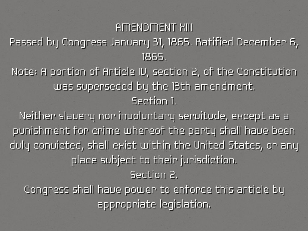 Passed by Congress January 31, 1865. Ratified December 6, 1865.