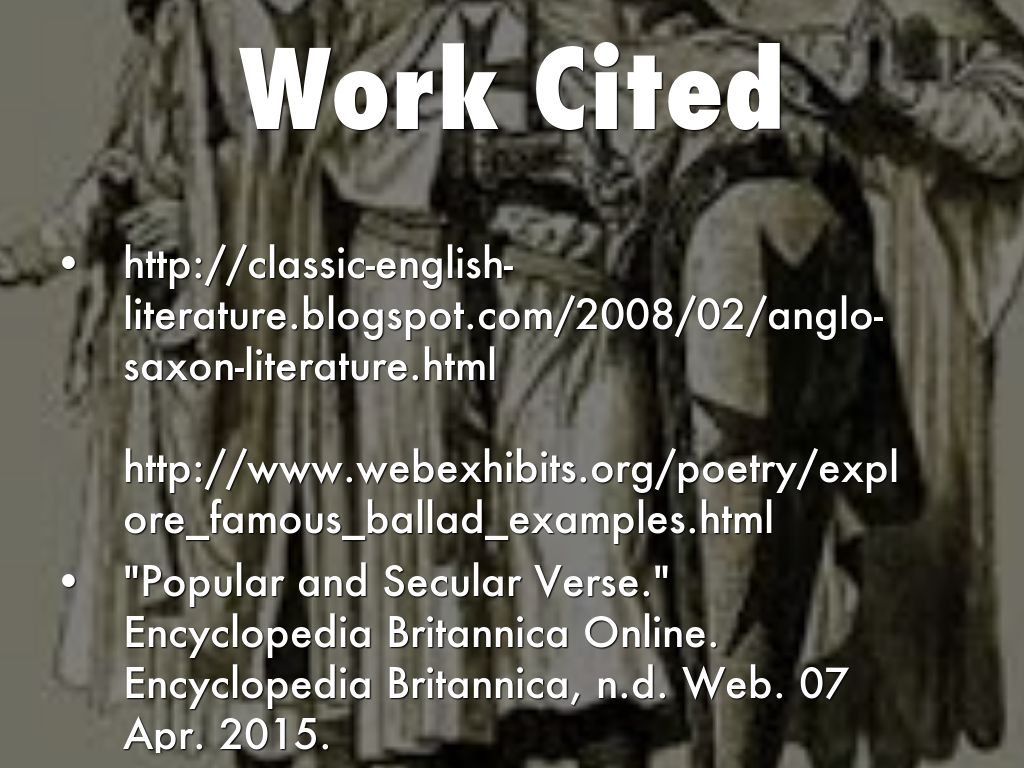 "Popular and Secular Verse." Encyclopedia Britannica Online. Encyclopedia Britannica, n.d. Web. 07 Apr. 2015.