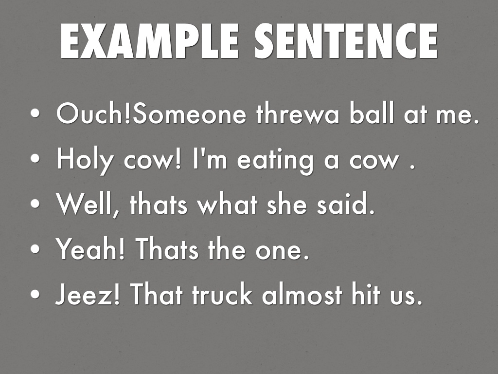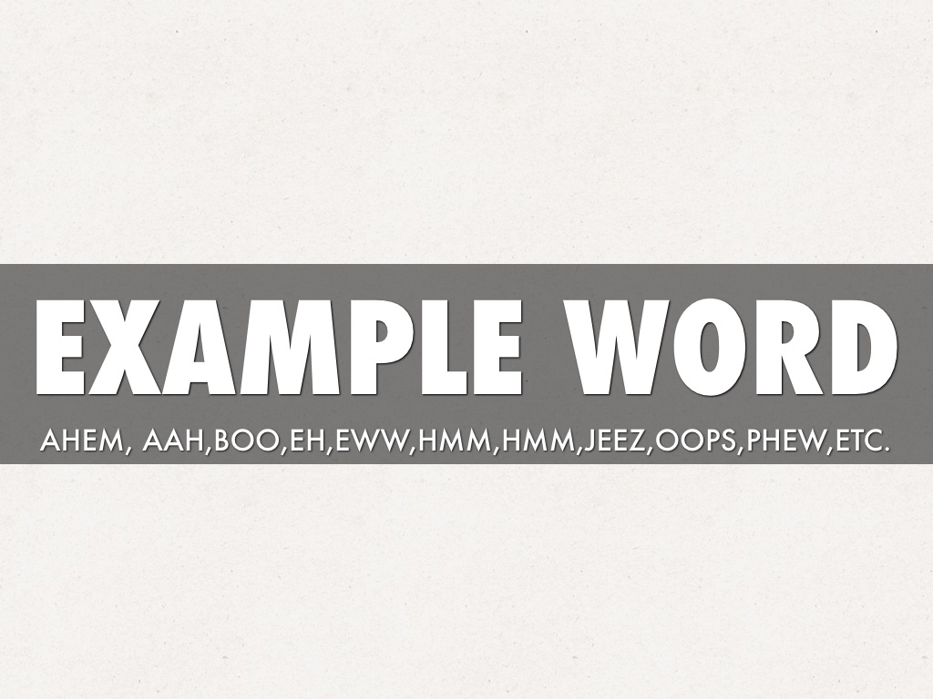 AHEM, AAH,BOO,EH,EWW,HMM,HMM,JEEZ,OOPS,PHEW,ETC.