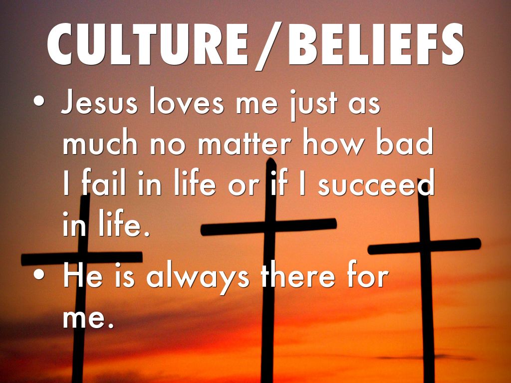 Jesus loves me just as much no matter how bad I fail in life or if I succeed in life.