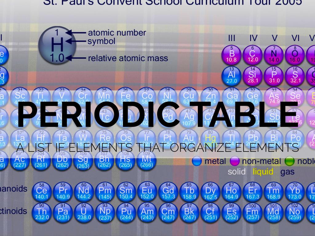 A LIST IF ELEMENTS THAT ORGANIZE ELEMENTS