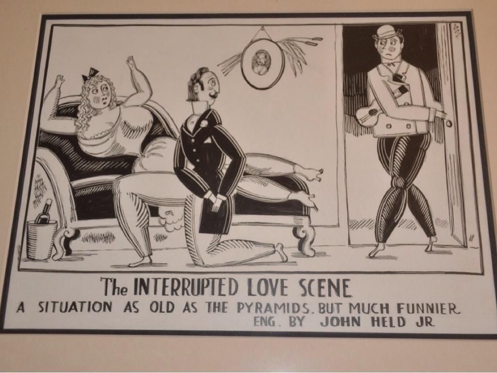 • This picture conveys to humor on how a man is walking in on his cheating wife.