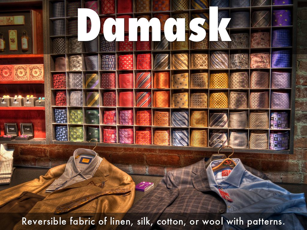 Reversible fabric of linen, silk, cotton, or wool with patterns.