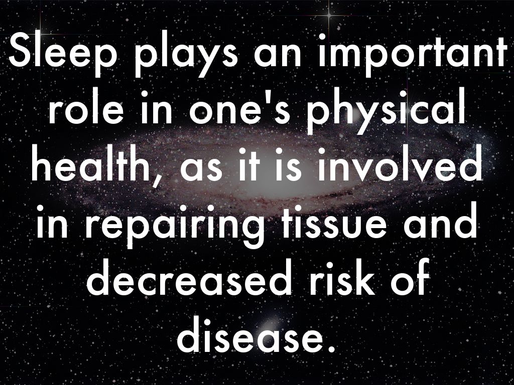 Sleep plays an important role in one's physical health, as it is involved in repairing tissue and decreased risk of disease.