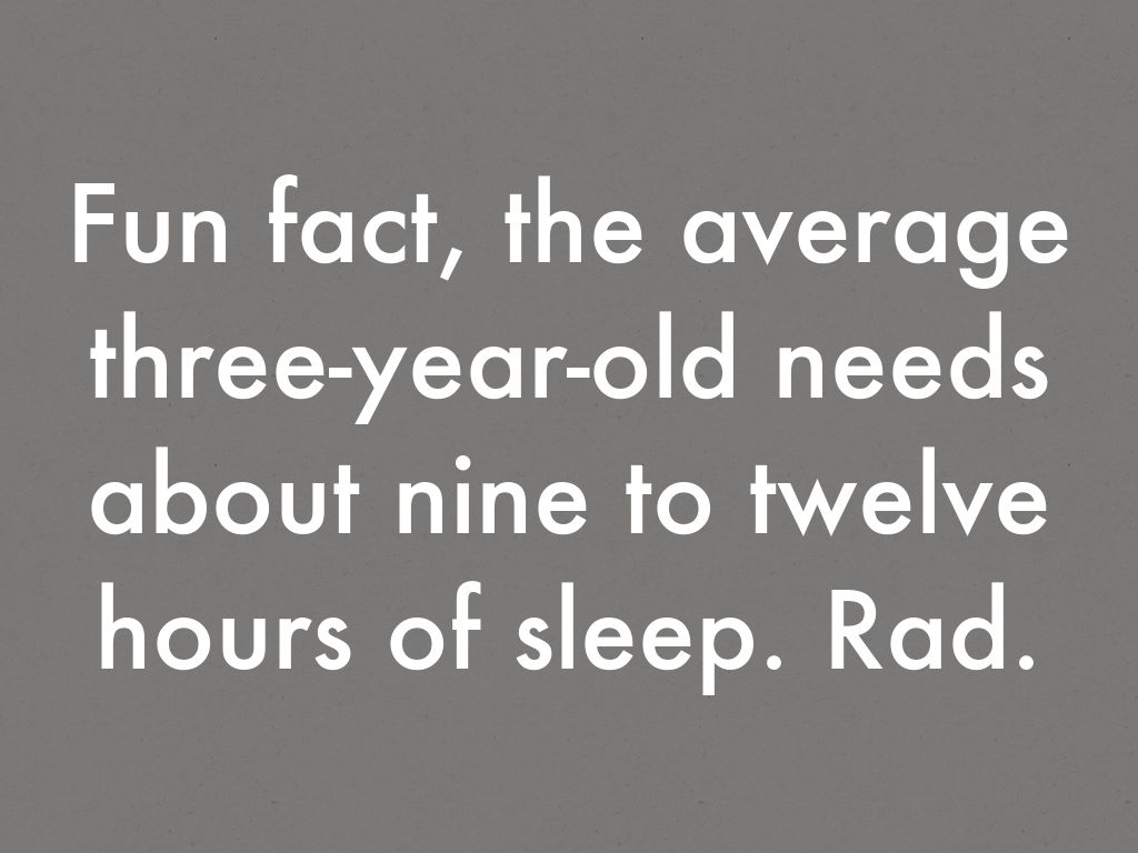 Fun fact, the average three-year-old needs about nine to twelve hours of sleep. Rad.