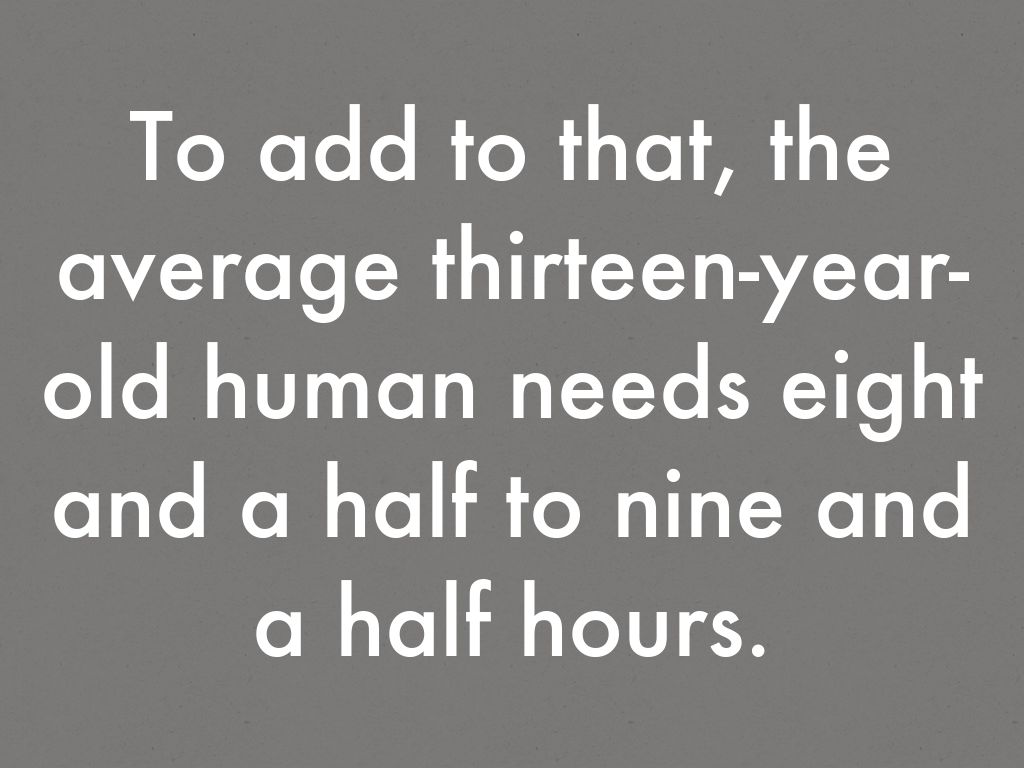 To add to that, the average thirteen-year-old human needs eight and a half to nine and a half hours.