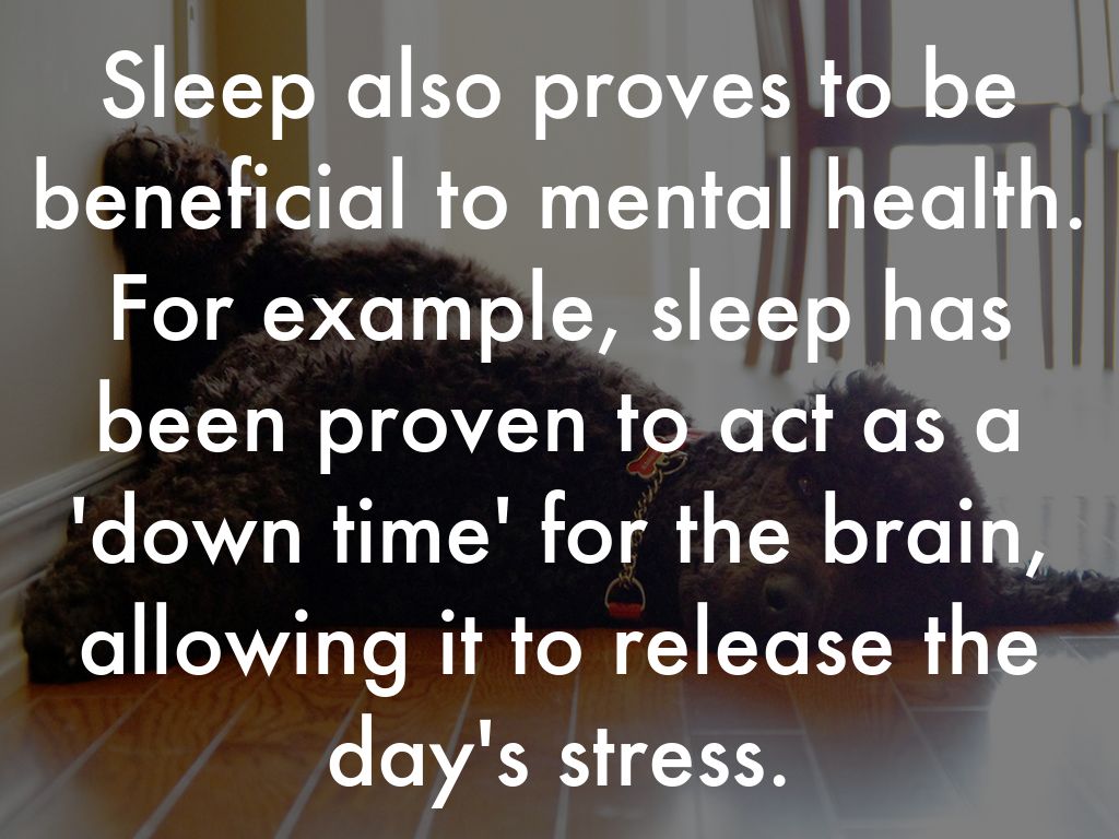 Sleep also proves to be beneficial to mental health. For example, sleep has been proven to act as a 'down time' for the brain, allowing it to release the day's stress.