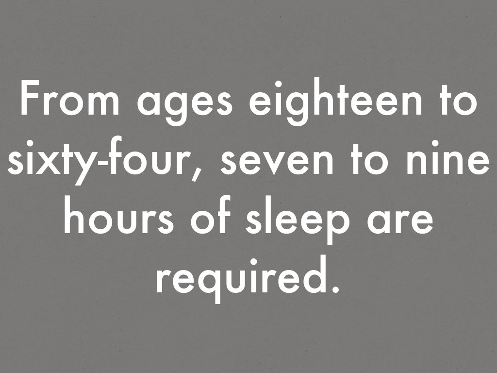 From ages eighteen to sixty-four, seven to nine hours of sleep are required.