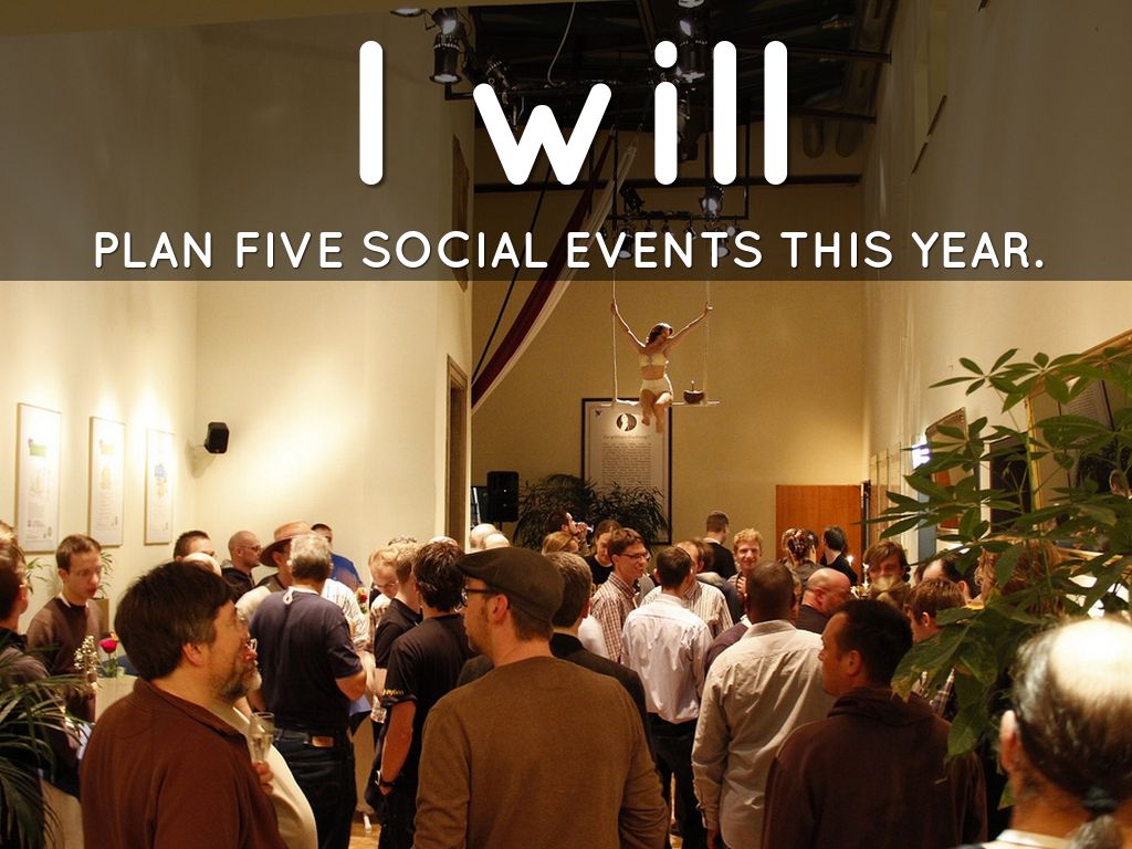 PLAN FIVE SOCIAL EVENTS THIS YEAR.