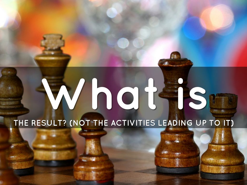THE RESULT? (NOT THE ACTIVITIES LEADING UP TO IT)