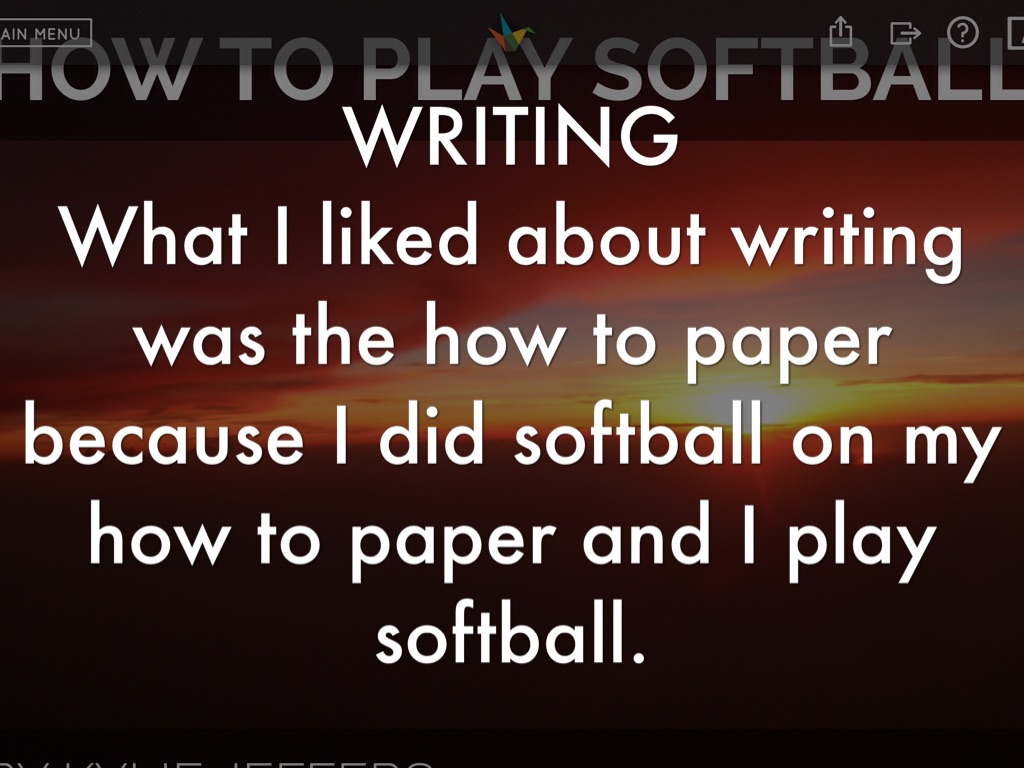 What I liked about writing was the how to paper because I did softball on my how to paper and I play softball.