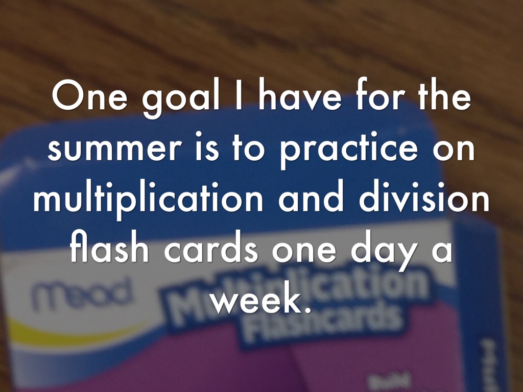 One goal I have for the summer is to practice on multiplication and division flash cards one day a week.