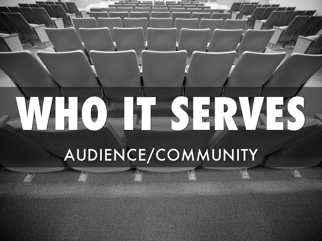 Make clear who this project/service/product is aimed at. Is it for a particular geographic audience, or a particular demographic group? Or is it for people with a particular interest (i.e. a psychographic?) Or maybe it's for people who have a particular problem or a certain need. Make clear who you are building this product/service/project for so that it's clear who will benefit from it.