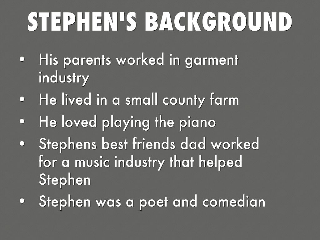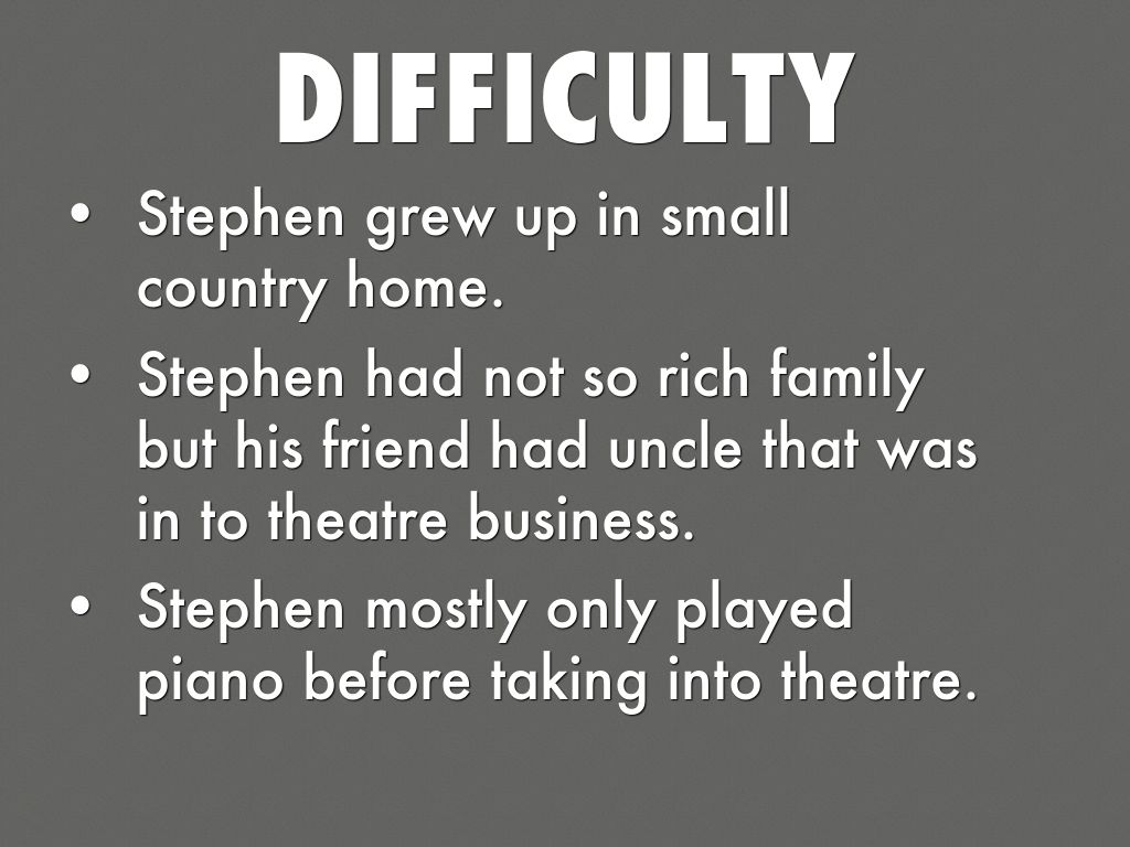 Stephen had not so rich family but his friend had uncle that was in to theatre business.