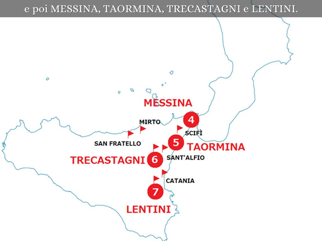 e poi MESSINA, TAORMINA, TRECASTAGNI e LENTINI.
