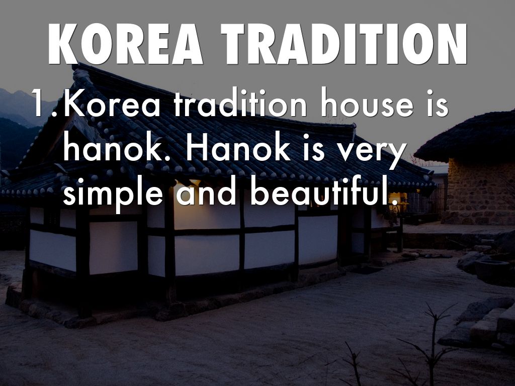 Korea tradition house is hanok. Hanok is very simple and beautiful.