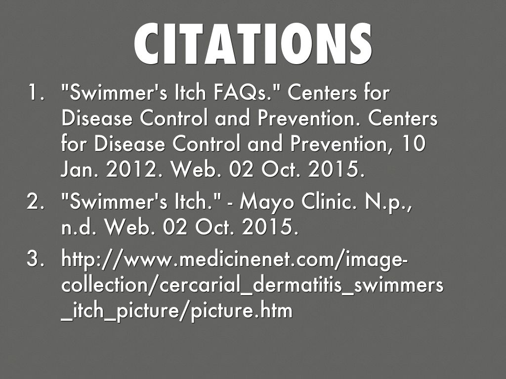 "Swimmer's Itch." - Mayo Clinic. N.p., n.d. Web. 02 Oct. 2015.