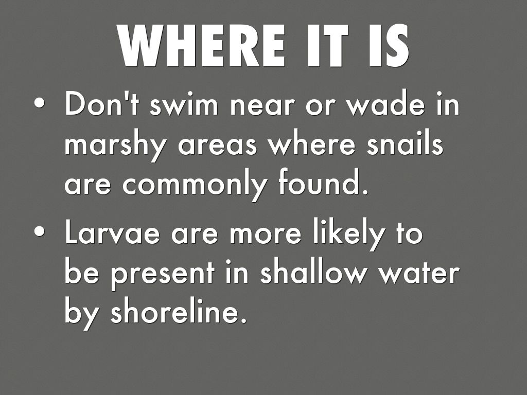 Don't swim near or wade in marshy areas where snails are commonly found.