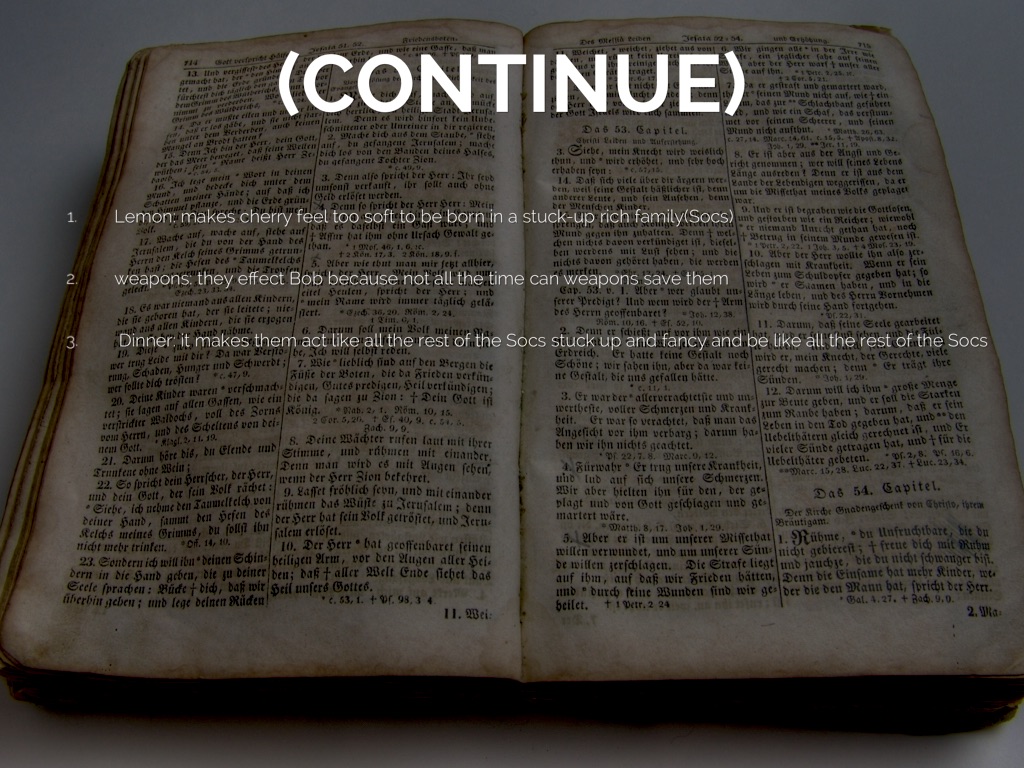 Dinner: it makes them act like all the rest of the Socs stuck up and fancy and be like all the rest of the Socs