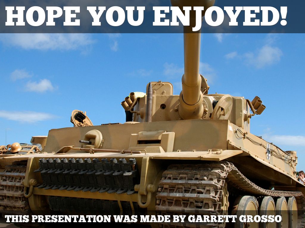 This tank may seem, perfect, almost infallible, but there are 2 big reasons why it was not the "perfect" tank. For one, it was slow and slow to turn so it was vulnerable to flanking. Second of all, towards the end of the war, which was when this thing was made, Germany was running out of resources, and they were only able to make just over 1000 of them. The Russians and Americans just overwhelmed them with endless Shermans and T-34s to win.