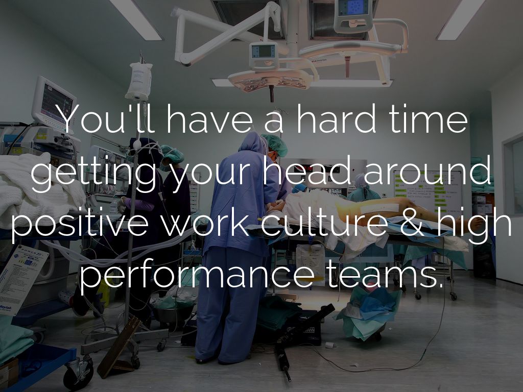 You'll have a hard time getting your head around positive work culture & high performance teams.