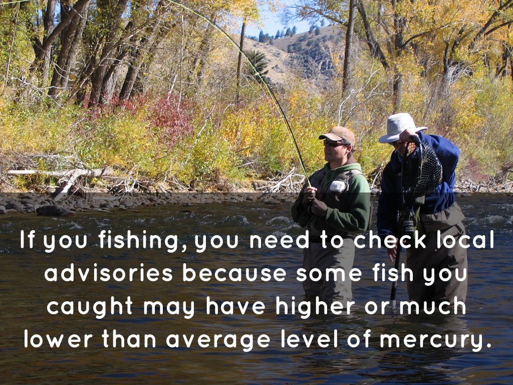 If you fishing, you need to check local advisories because some fish you caught may have higher or much lower than average level of mercury.