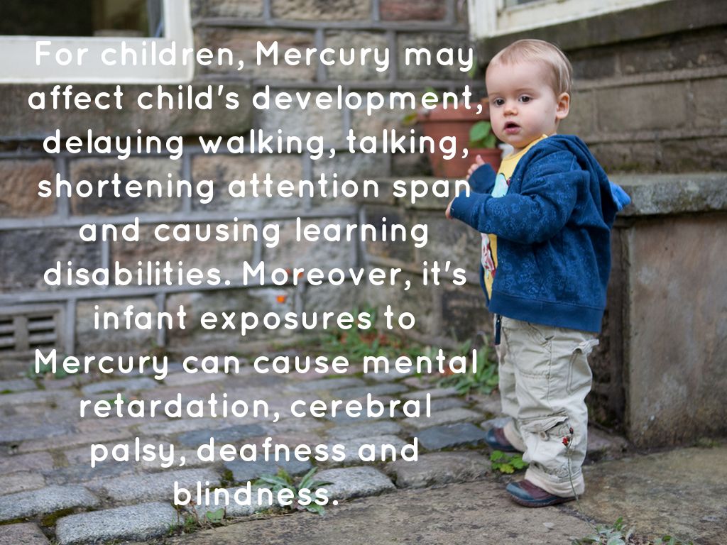 For children, myercury affect children's development, it's can cause mental retardation, cerebral palsy, deafness and blindness.