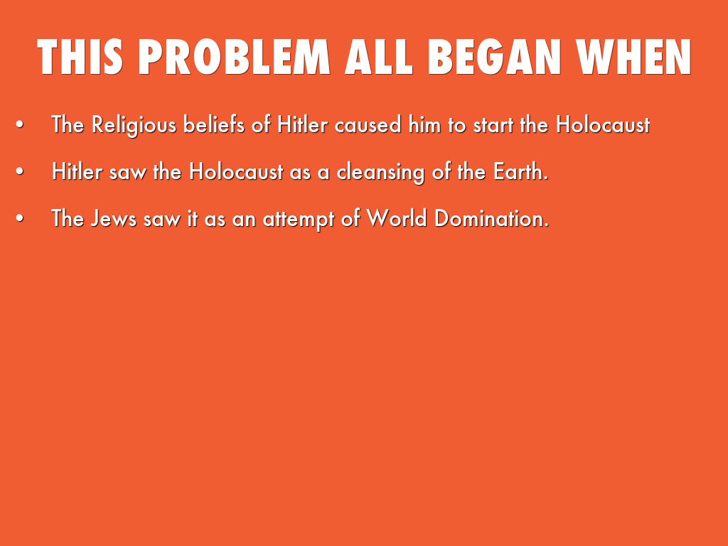 • The Religious beliefs of Hitler caused him to start the Holocaust